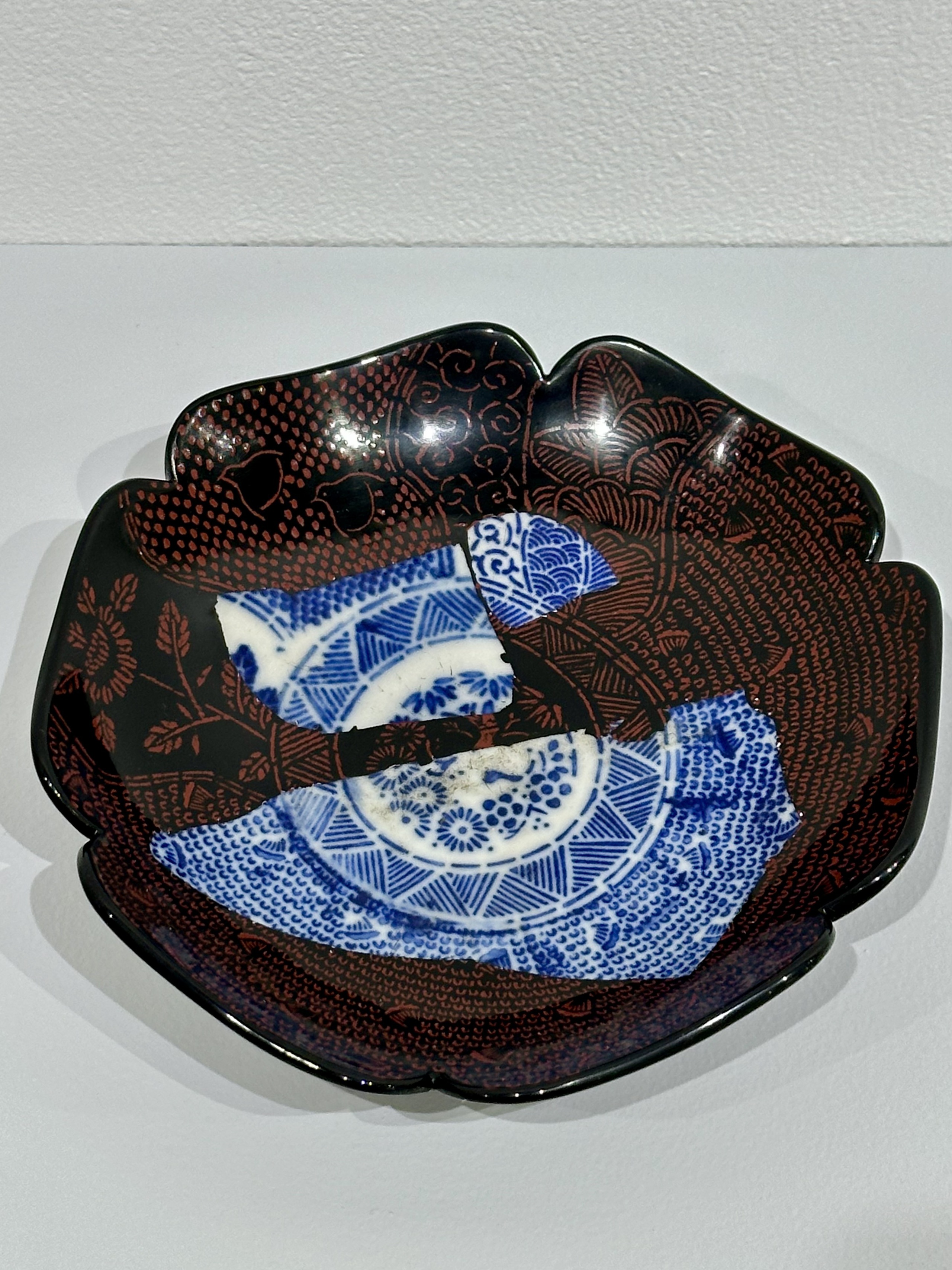 街中の川に落ちている器などのカケラを拾って、漆で繋ぎ合わせて作品を制作しています。