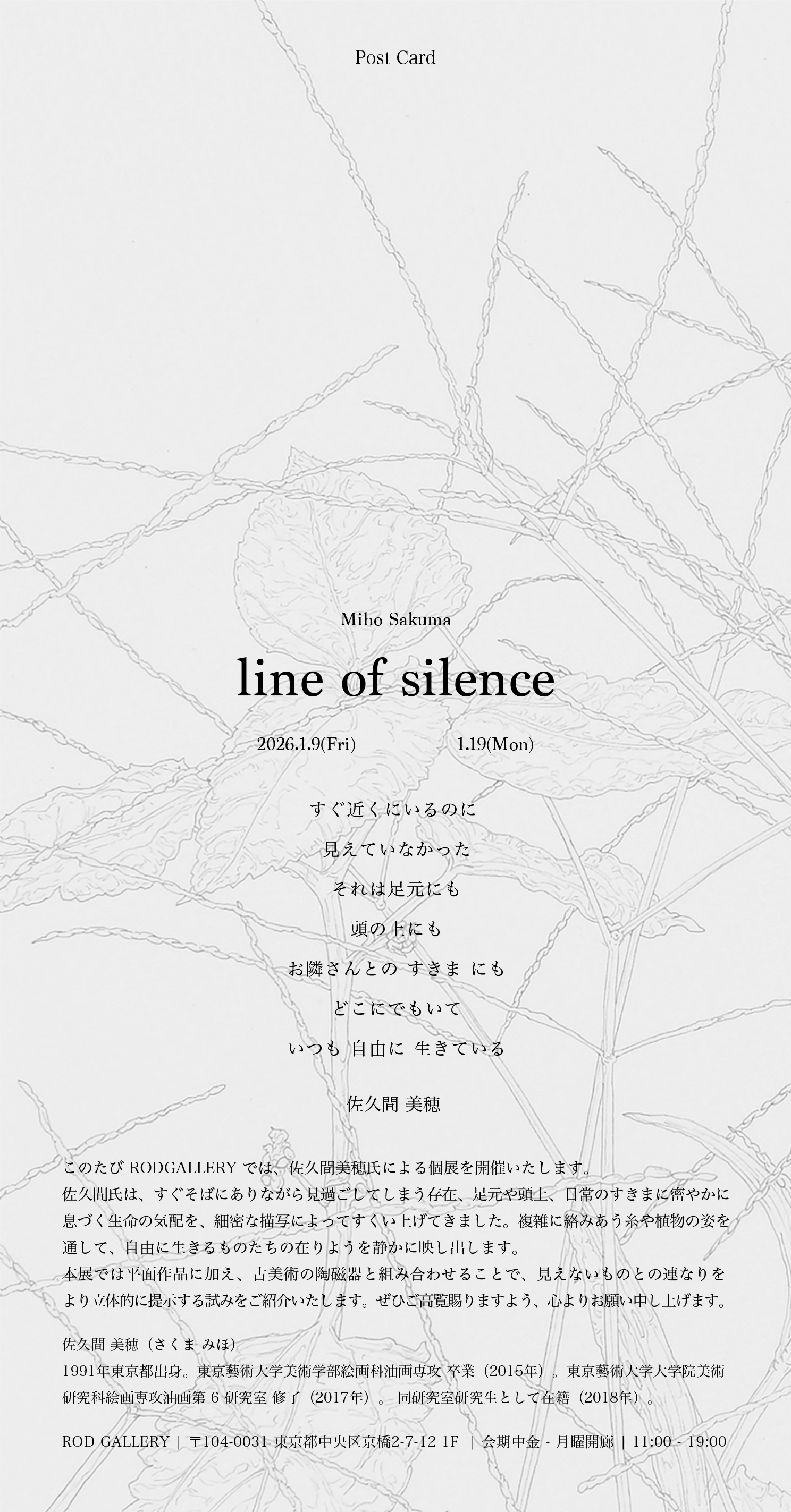 佐久間さんは存在の輪郭線を描き起こすことで、植物も、そして自分自身も、今ここに在って生きているということを、静かに思いださせてくれる。