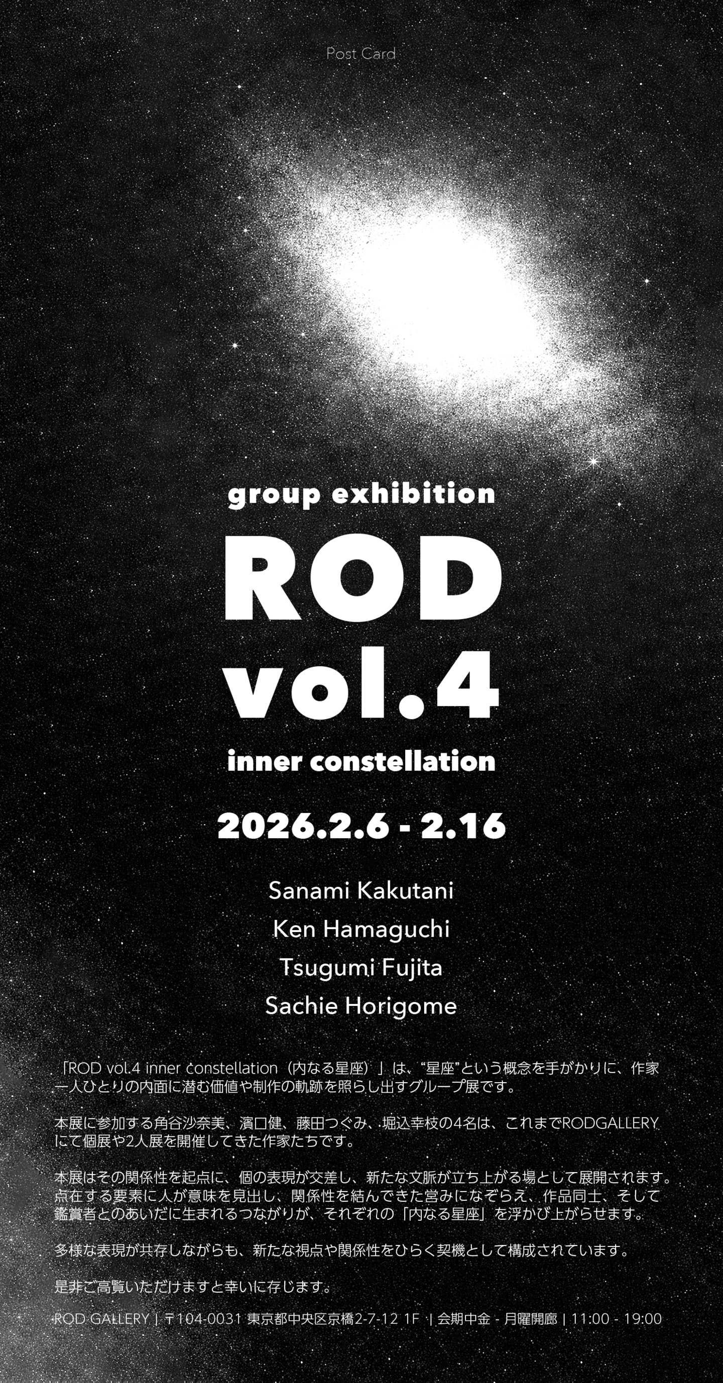 「ROD vol.4 inner constellation(内なる星座)」は、”星座”という概念を手がかりに、作家一人ひとりの内面に潜む価値や制作の軌跡を照らし出すグループ展です。